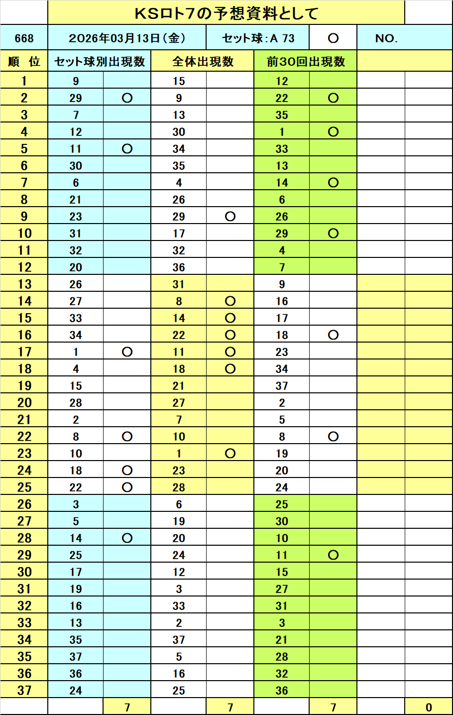 ===◆===◆======◆===◆=== ◆10億円獲得作戦(今週のロト7当選番号予想資料です!)◆